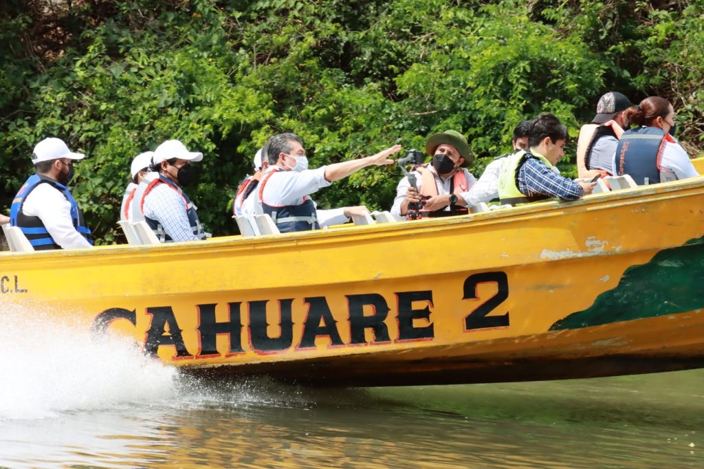 Luego de efectuar un recorrido por las aguas de esta maravilla natural, el gobernador Rutilio Escandón Cadenas manifestó su satisfacción al constatar que el esfuerzo en conjunto de las autoridades, sociedad, equipos de trabajo y las y los expertos, está haciendo realidad el sueño de que se mantengan transparentes y en óptimas condiciones.