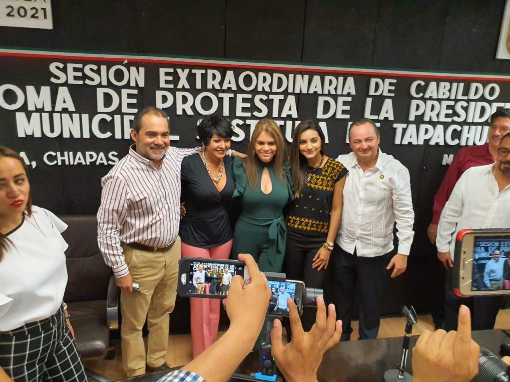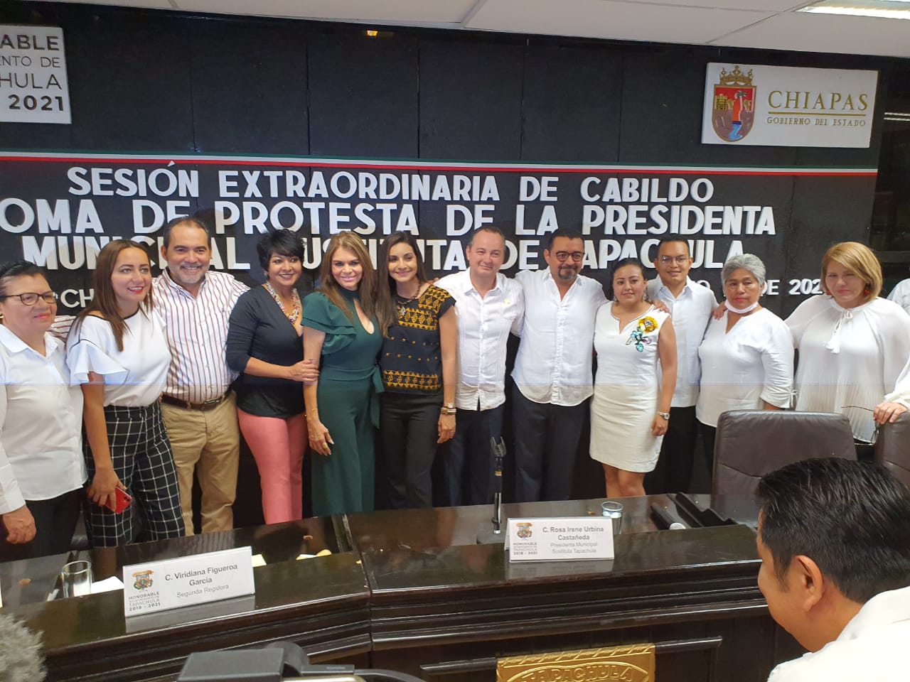 Tapachula, Chis. Ante la ausencia del primer regidor, Isidro Ovando Medina, la tarde de este domingo, ocho regidores y diputados locales tomaron protesta como alcalde sustituta a Rosa Irene Urbina Castañeda que concluirá la administración hasta 2021.
