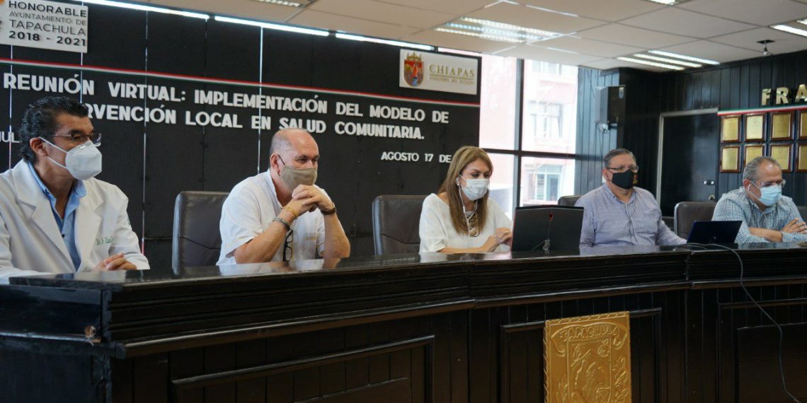Tapachula, Chiapas.- Con la participación de los alcaldes integrantes de la Red de Municipios Saludables del Distrito Sanitario Número VII, se realizó la reunión virtual para la implementación del Modelo de Intervención Local en Salud Comunitaria que tiene como objetivo principal romper la cadena de contagios por Covid-19.