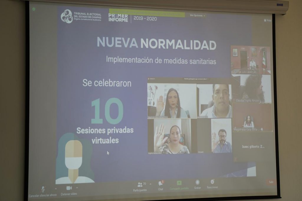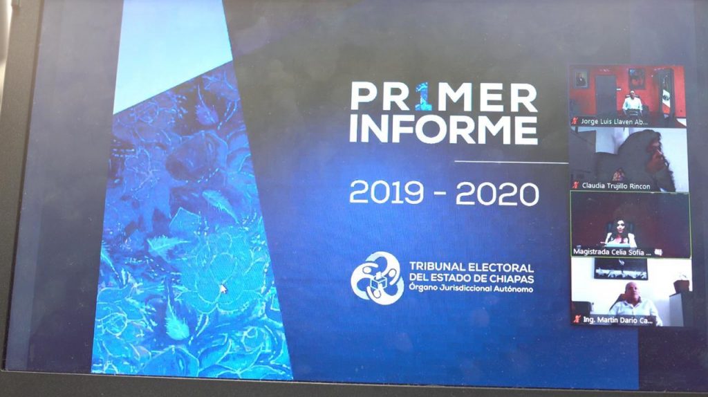 Tuxtla Gutiérrez, Chiapas.- El fiscal general Jorge Llaven Abarca atestiguó el Informe de Actividades 2019-2020 de la Magistrada Presidenta del Tribunal Electoral del Estado, Celia Sofía Ruiz Olvera, que se realizó de manera virtual, en el cual reconoció su compromiso a favor de la justicia electoral para dar certeza a la democracia en Chiapas y México.