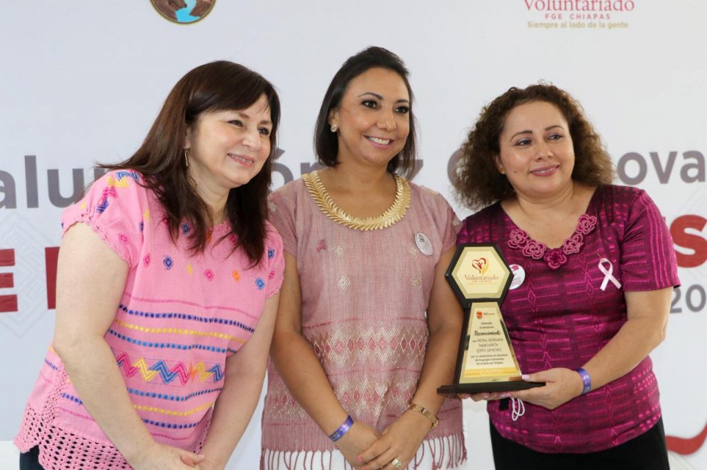 En este marco, Rosalinda López Hernández, presidenta del Voluntariado de Corazón, reconoció la ardua labor de las damas del Voluntariado FGE “Siempre al lado de la gente” para construir una mejor sociedad: “Me congratulo por todo el trabajo que han realizado, hoy hay un gobierno con una visión distinta, un gobierno humano, porque humano es nuestro presidente Andrés Manuel López Obrador, todos los equipos, como el de la Fiscalía del Estado, demuestran que la frase Chiapas de Corazón es el sello distintivo de este gobierno, porque todos aportan su granito de arena para ayudar a los demás”.